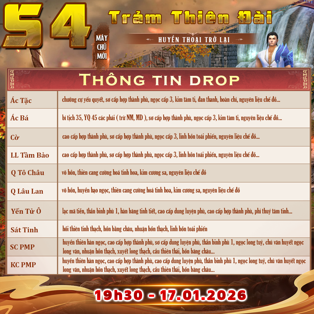 ? S4 – TRẢM THIÊN ĐÀI mở cửa đón anh em vào lúc 19h30 ngày 17.01.2026